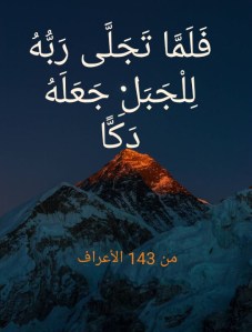 ولقد قدَّم لنا القرآن العظيم مثالاً على ما سيكون عليه الحال يوم تشرق الأرضُ بنورِ ربِّها، وذلك في سياق حديثه عما جرى لسيدنا موسى عليه السلام في خلوته الأربعينية مع الله تعالى (وَلَمَّا جَاءَ مُوسَى لِمِيقَاتِنَا وَكَلَّمَهُ رَبُّهُ قَالَ رَبِّ أَرِنِي أَنْظُرْ إِلَيْكَ قَالَ لَنْ تَرَانِي وَلَكِنِ انْظُرْ إِلَى الْجَبَلِ فَإِنِ اسْتَقَرَّ مَكَانَهُ فَسَوْفَ تَرَانِي فَلَمَّا تَجَلَّى رَبُّهُ لِلْجَبَلِ جَعَلَهُ دَكًّا وَخَرَّ مُوسَى صَعِقًا) (من 143 الأعراف). فاللهُ تعالى تجلى للجبل فزال الجبلُ وأصبح تراباً، واللهُ تعالى سوف يتجلى للسموات والأرض يوم القيامة فيُحيلهما هذا التجلِّي الإلهي هباءً منثوراً بلمحٍ بالبصر. فما سيحدث يوم القيامة لن يستغرق غير لحظةٍ يزول فيها كل ما في السموات والأرض من موجودات. وهذا أمرٌ لا ينبغي أن يجادل فيه مَن صحَّ لديه أن الله تعالى تجلى لجبل سيدنا موسى عليه السلام فجعله دكاً.