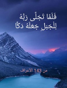 لقرآن الله العظيم حقيقةٌ أشارت إليها الآية الكريمة 21 من سورة الحشر (لَوْ أَنْزَلْنَا هَذَا الْقُرْآنَ عَلَى جَبَلٍ لَرَأَيْتَهُ خَاشِعًا مُتَصَدِّعًا مِنْ خَشْيَةِ اللَّهِ وَتِلْكَ الْأَمْثَالُ نَضْرِبُهَا لِلنَّاسِ لَعَلَّهُمْ يَتَفَكَّرُون). فلو أن هذا القرآن تجلى لنا بوجهه الحقيقي لأصابنا ما كان ليصيب الجبل لو أن الله تعالى أنزله عليه. وهذا ليس بالمستغرب وذلك طالما كان القرآن العظيم هو كلام الله تعالى الذي أنبأنا هذا القرآن بأنه تجلى لجبل سيدنا موسى عليه السلام فجعله دكاً (فَلَمَّا تَجَلَّى رَبُّهُ لِلْجَبَلِ جَعَلَهُ دَكًّا وَخَرَّ مُوسَى صَعِقًا فَلَمَّا أَفَاقَ قَالَ سُبْحَانَكَ تُبْتُ إِلَيْكَ وَأَنَا أَوَّلُ الْمُؤْمِنِين) (من 143 الأعراف). فالله متواجد بيننا دونما تجلٍّ منه، إذ أن تجلِّيه تعالى لنا سيجعل منا نتلاشى وننهار كما حدث لجبل سيدنا موسى عليه السلام. والله قادر على أن يتجلى للوجود أنى شاء، ولكنه تعالى لا يتجلى له وذلك كيما يكون لهذا الوجود أن يكون فلا يزول. والله تعالى سيتجلى للوجود يوم القيامة فيزول هذا الوجود ولا يبقى منه شيء.