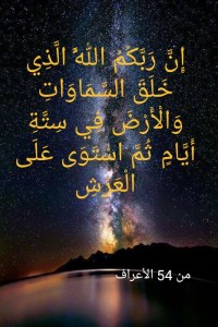 إذاً خلق الله تعالى السموات والأرض وما بينهما ثم استوى على العرش، وذلك بأن كان لله تعالى فيهما من تواجده ما كفل لهما البقاء. وبذلك استقرت السموات والأرض بهذا التواجد الإلهي اللطيف الخفي فيهما إلى حينٍ مأجولٍ بأجل قدوم يوم القيامة حيث سيزول كل شيء ولا يبقى إلا وجه الله تعالى (كُلُّ مَنْ عَلَيْهَا فَانٍ. وَيَبْقَى وَجْهُ رَبِّكَ ذُو الْجَلَالِ وَالْإِكْرَامِ) (26 -27 الرحمن). وعالمنا المخلوق هذا هو عالم كرسي الله تعالى، ويفصله عن عالم عرش الله تعالى حجابٌ عرَّفنا به قرآن الله العظيم بأنه “أقطار السموات والأرض”، وذلك في الآية الكريمة (يَا مَعْشَرَ الْجِنِّ وَالْإِنْسِ إِنِ اسْتَطَعْتُمْ أَنْ تَنْفُذُوا مِنْ أَقْطَارِ السَّمَاوَاتِ وَالْأَرْضِ فَانْفُذُوا لَا تَنْفُذُونَ إِلَّا بِسُلْطَانٍ) (33 الرحمن).
