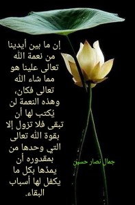 وهكذا يتبيّن لنا، بتدبُّر هذه الكلمات القرآنية الكريمة: “مَا شَاءَ اللَّهُ لَا قُوَّةَ إِلَّا بِاللَّهِ”، أن ما بين أيدينا من نعمة الله تعالى علينا هو مما شاء الله تعالى فكان، وهذه النعمة لن يُكتب لها أن تبقى فلا تزول إلا بقوة الله تعالى التي وحدها من بمقدوره أن يمدَّها بكل ما يكفل لها أسباب البقاء.
