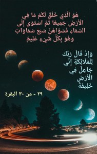 ومن عجائب القرآن العظيم الذي لا تنقضي عجائبه، كما جاءنا عن رسول الله صلى الله تعالى عليه وسلم، هذا التلاحق العجيب بين الآيتين الكريمتين 29 و30 البقرة (هُوَ الَّذِي خَلَقَ لَكُمْ مَا فِي الْأَرْضِ جَمِيعًا ثُمَّ اسْتَوَى إِلَى السَّمَاءِ فَسَوَّاهُنَّ سَبْعَ سَمَاوَاتٍ وَهُوَ بِكُلِّ شَيْءٍ عَلِيمٌ. وَإِذْ قَالَ رَبُّكَ لِلْمَلَائِكَةِ إِنِّي جَاعِلٌ فِي الْأَرْضِ خَلِيفَةً). فالله تعالى اصطفى سيدنا آدم عليه السلام فجعله في الأرض خليفة. والأرض هنا هي أرض السماء الدنيا التي عُرج بسيدنا آدم عليه السلام منها إلى أرض السماء السابعة حيث كان ما كان من محنة وفتنة وابتلاء الشجرة، ثم كان على سيدنا آدم أن يعود إلى هذه الأرض لتبدأ مسيرة بني آدم عليها حتى زوال الأرض يوم القيامة.