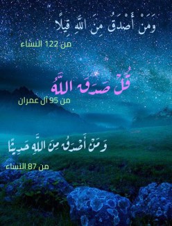 الله تعالى أصدق المحدِّثين وهو أصدق القائلين. وإذا كان القرآن العظيم قد نص صراحةً على هاتين الحقيقتين في آيتين كريمتين هما: (وَمَنْ أَصْدَقُ مِنَ اللَّهِ حَدِيثًا) (من 87 النساء) و(وَمَنْ أَصْدَقُ مِنَ اللَّهِ قِيلًا) (من 122 النساء)، فإن تدبُّر ما بين أيدينا من وقائع وأحداث وظواهر ذات صلة بالظاهرة الإنسانية كفيلٌ بجعلنا نستيقن من أن هاتين الحقيقتين يشهد لهما بأنهما كذلك ما انطوت عليه هذه الظاهرة من مفرداتٍ يتبيَّن لكل من يُعمِل العقلَ فيها صدقُ ما جاءنا بشأنها قرآن الله العظيم الذي هو حديث الله تعالى وقوله.