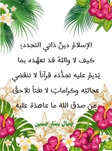 ولقد تكفَّل اللهُ تعالى بأن يجعل دينَه الإلهي ذا قدرةٍ ذاتية على التطور والتجدد فلا يحتاج والحال هذه إلى مَن ينبري له بتجديد منظومته المعرفية-العقائدية. والإسلام، بهذا التكفُّل الإلهي لبنيانه الديني، قادرٌ على أن يواكب كلَّ عصرٍ بهذا الذي هو عليه من قدرةٍ إلهيةٍ على تبيان السبيل للخروج من كل مأزقٍ يُخيَّل للجاهل بإلهيته ألا قدرةَ له على الخروج منه منتصراً هو ومن تديَّن به حقَّ التديُّن. فإذا كان اللهُ قد أنزلَ قرآنَه العظيم تبياناً لكلِّ شيء، فكيف يظن الجُهال بهذا الدين أن بمقدورهم أن يجددوه؟!