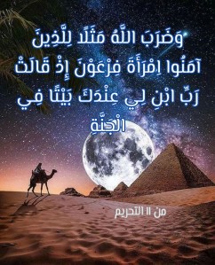 ولأن جنةَ المأوى هي مصيرُ مَن يُقتَل في سبيل الله في هذه الحياة الدنيا قبل جنةِ الآخرة، فلقد دعت إمرأةُ فرعون دعاءها الذي وثَّقته سورةُ التحريم (وَضَرَبَ اللَّهُ مَثَلًا لِلَّذِينَ آمَنُوا اِمْرَأَةَ فِرْعَوْنَ إِذْ قَالَتْ رَبِّ ابْنِ لِي عِنْدَكَ بَيْتًا فِي الْجَنَّةِ وَنَجِّنِي مِنْ فِرْعَوْنَ وَعَمَلِهِ وَنَجِّنِي مِنَ الْقَوْمِ الظَّالِمِينَ). فجنةُ المأوى هي أقرب جِنان الحياة الدنيا إلى عرش الله العظيم، وهذا هو عينُ ما أشارت إليه إمرأةُ فرعون بقولها “عندك في الجنة”.