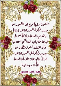 وهكذا فإن هذه العودة لسفينة سيدنا نوح عليه السلام من جديد ستجعلنا نُعيدُ قراءة ما جاء بشأن هذه السفينة المباركة في قرآن الله العظيم، وبما يجعل منا ننتهي إلى أن اللهَ تعالى قد ضمَّن فيما قاله لنا عنها ما يُفيدُ بأنها ستعود للظهور من جديد، وأن ظهورها هذا سيكون علامةً من علامات اقتراب الساعة، وذلك مصداق قوله تعالى في الآية الكريمة 15 من سورة العنكبوت (فَأَنْجَيْنَاهُ وَأَصْحَابَ السَّفِينَةِ وَجَعَلْنَاهَا آيَةً لِلْعَالَمِينَ).