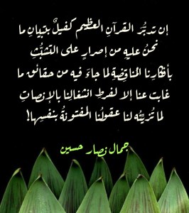 إن تدبُّرَ القرآن العظيم كفيلٌ بتطهيرِ عقولِنا من الظنون والأوهام والأفكار الخاطئة، والتي لا سبيل للتخلُّص منها إلا بالمواظبةِ على هذا التدبُّر. وكلُّ تصورٍ لنا عن الله تعالى أو عن الوجود لابد وأن نعرضه على القرآن العظيم وذلك حتى يكون بمقدورنا أن نُصوِّبَه ونُقوِّمَه ونُصَحِّحَه وفقاً لما جاءنا به هذا القرآن.