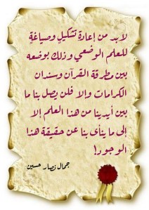 ونحن إذا ما أردنا أن نُصلِح العلمَ الوضعي إصلاحاً يُمكِّنُه من أن يكون سبيلَنا إلى معرفة الكثير من خفايا وخبايا وأسرار هذا الوجود، فليس أمامنا إلا أن نعملَ على تخليصه من هذا الغرور الملازم له كظلِّه! وليس هناك مَن بمقدوره أن يمد لنا يدَ العون لنُعين العلم الوضعي على أن يبرأ من غروره القاتل هذا إلا القرآنُ العظيم وكرامات الأولياء. فالقرآن العظيم يشتمل على جملةٍ من “الحقائق العرفانية” بمستطاع العلم الوضعي أن يهتدي بها إلى ما يُمكِّنه من إدراك ما فاته من “خيرٍ معرفي” كثير بسببٍ من انصياعه لغروره وامتثاله لما يُمليه عليه. بينما تؤمِّنُ كرامات الأولياء للعلم الوضعي كلَّ ما هو بحاجةٍ إليه من زادٍ وعتاد حتى يكون بمقدوره أن يُخرِس لسانَ غروره إلى الأبد وذلك من بعد أن يتبيَّن له عجزُه عن أن يُعلِّل لما تنطوي عليه هذه الكرامات من تسلُّطٍ على نظرياتِه واستعصاءٍ عن أن يكون بمقدور قوانينِه أن تُعلِّل لها.