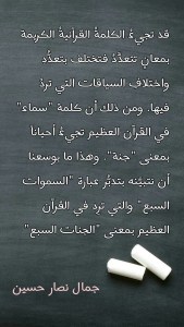 تحدثتُ في منشوراتٍ سابقة عن معنى “السموات السبع”. وذكرتُ أن هذه السموات هي كواكب سبعة ميَّزها اللهُ تعالى عن آلاف الملايين من كواكب الكون الأخرى بأن فيها حياةً بايولوجية جعلت منها كواكبَ تنبض بهذا النوع من الحياة. وبذلك تكون هذه السموات السبعة جناتٍ سبعة طالما كانت الجنة هي حيثُ تزدهر حياةٌ بايولوجية نباتية وحيوانية.