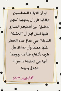 ولو أن الطرفَين أنصت واحدُهم لخصمه لتبيَّن للجميع أن الحقيقةَ الكاملة لا وصولَ إليها إلا بتكامل ما بين أيدي هذين الطرفَين من العلم! فدينُ اللهِ تعالى قادرٌ على أن يقدِّم لعلماء البايولوجيا التطورية ما يكفل لهم أن يعلِّلوا لكلِّ هذا الذي يتناشز به الإنسان عن الطبيعة، بينما يستطيع علم البايولوجيا التطورية أن يمكِّن رجال الدين التقليديين من أن يقاربوا دينَ اللهِ تعالى المقاربةَ المثلى فلا يضلّوا بعد ذلك أبداً.