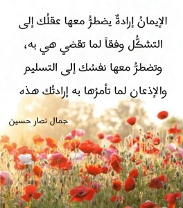 إذاً فالإيمانُ يقتضي منك أن تكون ذا إرادةٍ حديديةٍ قبل أن تكون ذا عقلٍ سليم. فبهذه الإرادة يكون بمقدورك أن تضطرَّ عقلَك إلى الثبات على الإيمان، وتُرغم نفسَكَ على الخضوع لإرادتك فتُذعِن تمام الإذعان.