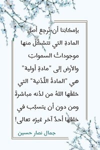 وإذا كان بإمكاننا أن نصِف نارَ سيدِنا موسى بأنها “نارٌ لدُنية”، وذلك لأنها نارٌ قد تخلَّقت تخلُّقاً آنياً من لدُن اللهِ تعالى، فإن بإمكاننا أن نتصوَّرَ ما حدثَ قبلَ مليارات السنين عندما بدأ اللهُ خلقَ السمواتِ والأرض فكان أن انبثقت من لدُنه تعالى “مادةٌ لدُنية” كانت هي “المادةُ الأولى” التي قيَّضَ اللهُ تعالى لها أن تتفاعلَ فيما بينها بإذنِه ليبدأ تخلُّقُ وتشكُّلُ أولى جزيئات الكون.