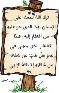 ولذلك فإنَّ اللهَ تعالى ما كان ليذرَ الإنسانَ يصطنعُ لنفسِهِ منهاجاً لخلاصِهِ وفلاحِهِ بهذا التشخيصِ منه لما ينبغي عليه أن يقومَ به وما يتوجبُ عليه أن يُحجِمَ عنه! فصلاحُ الإنسانِ يتطلبُ منه إصلاحاً يطالُ “مكامِنَ الشرِّ” داخله، وهذه مكامنٌ لا قدرةَ لغيرِ طبِّ اللهِ تعالى على تشخيصها والوصولِ إليها وبالتالي علاجِها. وتخفقُ كلُّ محاولةٍ من جانب الإنسان للتحرُّرِ من “شقائِه الآدمي” طالما لم تنطلق من إقرارِه بأنَّ علةَ هذا الشقاء تضربُ بجذورِها عميقاً في صُلبِ بُنيتِه ضرباً أوغلَها فيهِ إيغالاً يعجزُ كلُّ دواءٍ عن إبرائِهِ منه خلا دواءِ الله الذي يكفلُ للإنسان اهتداؤه بدينهِ تعالى أن يتعافى به فيشفى من شقائِه هذا.