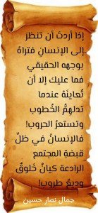 إن الوجهَ الحقيقي للإنسانِ قابعٌ من وراء قناعٍ اضطرَّه إلى وضعِهِ خوفُهُ من قبضةِ المجتمع التي يضطرُّهُ تراخيها أو غيابُها إلى الظهور بهذا الوجهِ الذي تمتلئ كتبُ التاريخ بما تسبَّبَ فيه من إفسادٍ في الأرضِ وسفكٍ للدماء.