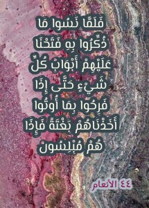 ما الذي بإمكاننا أن نصفَ به حضارةَ الإنسان المعاصرة من وصفٍ غيرَ ذاك الذي تُذكِّرُنا به الآياتُ الكريمة 42 -44 من سورة الأنعام؟ (وَلَقَدْ أَرْسَلْنَا إِلَى أُمَمٍ مِنْ قَبْلِكَ فَأَخَذْنَاهُمْ بِالْبَأْسَاءِ وَالضَّرَّاءِ لَعَلَّهُمْ يَتَضَرَّعُونَ. فَلَوْلَا إِذْ جَاءَهُمْ بَأْسُنَا تَضَرَّعُوا وَلَكِنْ قَسَتْ قُلُوبُهُمْ وَزَيَّنَ لَهُمُ الشَّيْطَانُ مَا كَانُوا يَعْمَلُونَ. فَلَمَّا نَسُوا مَا ذُكِّرُوا بِهِ فَتَحْنَا عَلَيْهِمْ أَبْوَابَ كُلِّ شَيْءٍ حَتَّى إِذَا فَرِحُوا بِمَا أُوتُوا أَخَذْنَاهُمْ بَغْتَةً فَإِذَا هُمْ مُبْلِسُون).