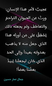 إن “التعاطفَ الإنساني” وإن كان عاجزاً عن كبحِ جماح العدوان البشري، إلا أنه يبقى واحداً من تلك الآثار التي تخلَّفت عن ماضينا الحيواني فكان لها أن تُجمِّلَ واقعَنا الإنساني البغيض بهذا الذي يجعلُنا معشرَ البشر نتعاطف فيما بيننا وذلك على الرغمِ من كلِّ ما يدفعُنا إلى أن يُعاديَ بعضُنا بعضاً!