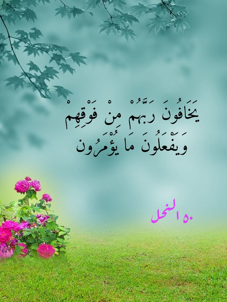 ولقد عزَّز القرآنُ العظيم “فوقيةَ الله تعالى” بما جاءتنا به سورةُ النحل (وَلِلَّهِ يَسْجُدُ مَا فِي السَّمَاوَاتِ وَمَا فِي الْأَرْضِ مِنْ دَابَّةٍ وَالْمَلَائِكَةُ وَهُمْ لَا يَسْتَكْبِرُونَ. يَخَافُونَ رَبَّهُمْ مِنْ فَوْقِهِمْ وَيَفْعَلُونَ مَا يُؤْمَرُون) (49 -50). فالملائكةُ هم أهلُ السموات، وهم يخافون ربَّهم الذي هو فوقهم، أي فوق السموات التي هم فيها.