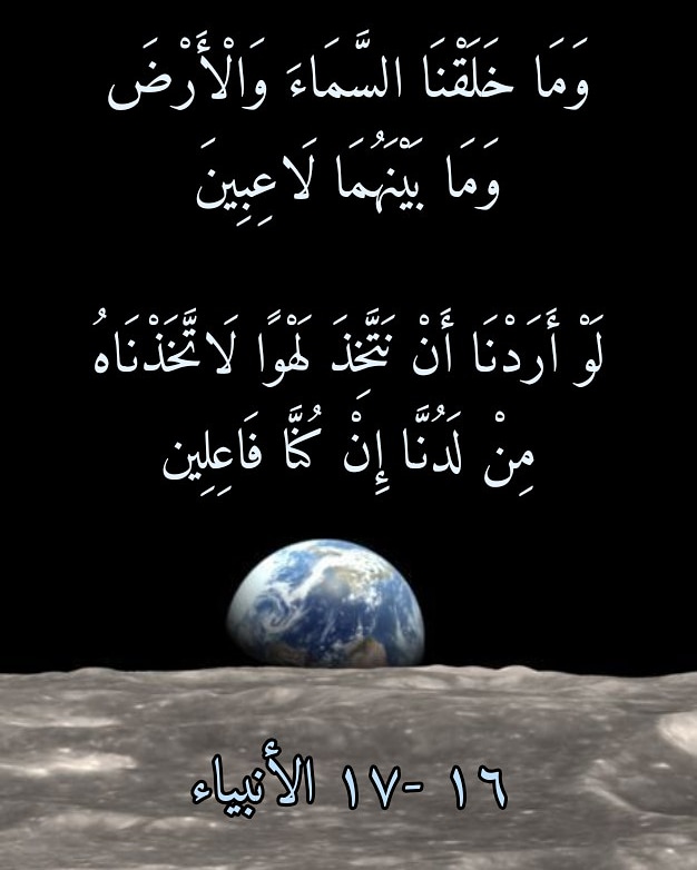 ولذلك فإننا مضطرون والحالُ هذه إلى أن نُقدِّمَ ما جاءنا به قرآنُ اللهِ العظيم من تصورٍ لنشأةِ الكون نخالفُ به عما يُريدُنا هؤلاء أن نُشاركَهم ظنَّهم الواهمِ حيالَ نشأة الكون. فلقد جاءنا القرآنُ العظيم بما يُمكِّنُنا من أن نقولَ، وبكلِّ ثقةٍ واعتداد، بأنَّ الكونَ قد انبثق إلى الوجودِ خَلقاً من لدن اللهِ تعالى لا يختلفُ في شيءٍ على الإطلاق عما صرَّحت به الآيتان الكريمتان 16 -17 الأنبياء (وَمَا خَلَقْنَا السَّمَاءَ وَالْأَرْضَ وَمَا بَيْنَهُمَا لَاعِبِينَ. لَوْ أَرَدْنَا أَنْ نَتَّخِذَ لَهْوًا لَاتَّخَذْنَاهُ مِنْ لَدُنَّا إِنْ كُنَّا فَاعِلِينَ).