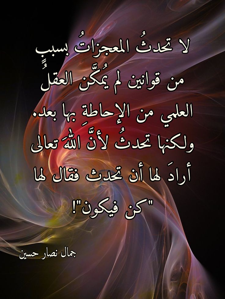 ودفاعٌ كهذا عن العلم يُفنِّدُه ما جاءنا به الدينُ الإلهي من حقيقةٍ مفادُها أنَّ أحداثَ الوجود لا تحدثُ إلا لأن اللهَ تعالى قيَّضَ لها أسباباً تحدثُ بمقتضاها، وأنَّ أحداثاً أخرى لابد وأن تحدثَ إذا ما شاء اللهُ تعالى لها أن تحدث؛ فالأمرُ ليس منوطاً بهذا القانون العلمي أو ذاك طالما كان الأمرُ كلُّه لله. فالمعجزات تحدثُ لأن اللهَ تعالى أرادَ لها أن تحدث، والأمرُ لا علاقةَ له بقانونٍ علمي لم يتسنَّ لنا الوقوعُ عليه بعد! فما الضيرُ من أن نقولَ بأنَّ اللهَ تعالى هو مَن يتسبَّبُ بحدوثِ المعجزات عوضَ أن نقولَ بهذه القوانين غير المكتشَفة بعد؟! فلا يُعقَل أن يكون هناك ملايين من هذه “القوانين غير المُكتشفة” بعد، والتي يتوجَّبُ علينا أن نفترضَ وجودَها لنُعلِّلَ لملايين المعجزات التي يكفينا أن نُعلِّل لها بأنَّ اللهَ أرادَ لها أن تحدث فقال لها “كن فيكون”!