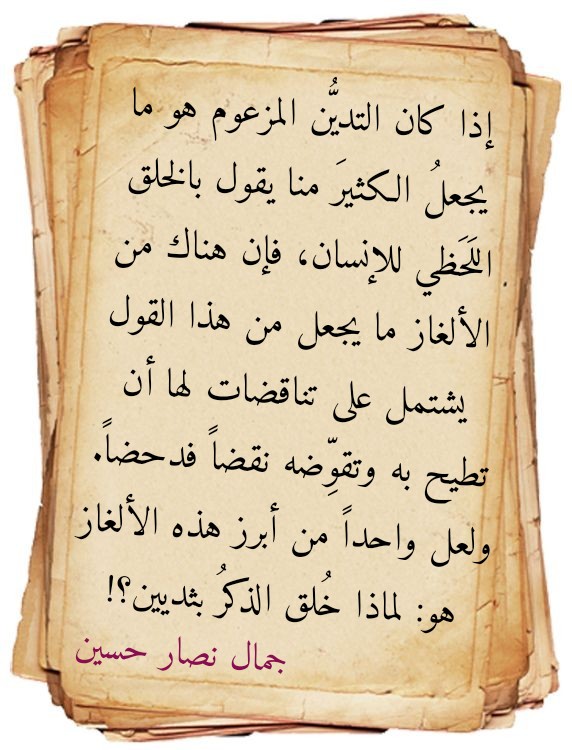 مارس 1, 2020مارس 16, 2020 Sufism24/7 لماذا خلقَ اللهُ الذكرَ بثديين؟ شارك هذا الموضوع: النقر للمشاركة على X (فتح في نافذة جديدة) X انقر للمشاركة على فيسبوك (فتح في نافذة جديدة) فيس بوك إعجاب تحميل... مرتبط