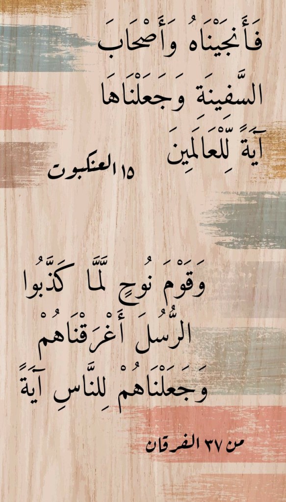 إنَّ كلَّ ما هو “مُضمَرٌ” من القرآنِ العظيم بالإمكانِ أن يُستدَلَّ عليه بتدبُّرِه بما هو “مُعلَنٌ” منه. فيكفينا أن نتدبَّرَ ما جاءتنا به سورةُ الفرقان في الآية الكريمة 37 منها (وَقَوْمَ نُوحٍ لَمَّا كَذَّبُوا الرُّسُلَ أَغْرَقْنَاهُمْ وَجَعَلْنَاهُمْ لِلنَّاسِ آيَةً)، وذلك بأن نقرأه بما جاءتنا به سورةُ العنكبوت في الآية الكريمة 15 منها (فَأَنْجَيْنَاهُ وَأَصْحَابَ السَّفِينَةِ وَجَعَلْنَاهَا آيَةً لِلْعَالَمِينَ).