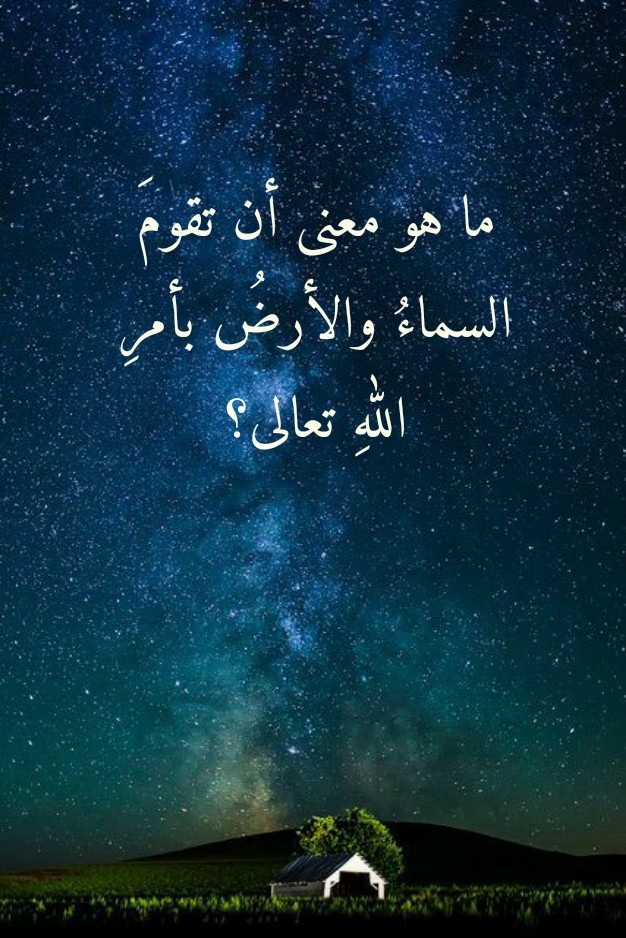 إنَّ ما تقدَّمَ يكفي لجعلِنا نتبيَّنُ المعنى الذي تنطوي عليه الآيةُ الكريمة 25 الروم (وَمِنْ آيَاتِهِ أَنْ تَقُومَ السَّمَاءُ وَالْأَرْضُ بِأَمْرِهِ). فأمرُ اللهِ تعالى المتسلِّطُ على أسبابِه وقوانينِه هو وحدَه من بمقدورِه أن يتكفَّلَ بقيامِ السماءِ والأرض قياماً لا زوالَ لهما معه مادام اللهُ هو مَن يُمسِكُ بهما.