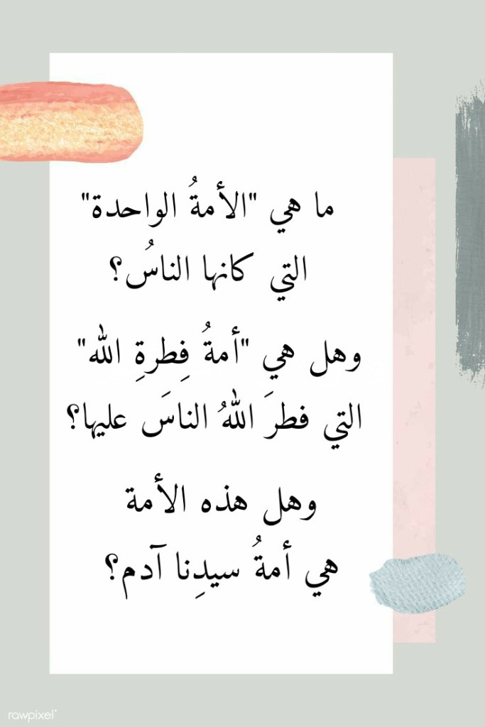 ما هي “الأمة الواحدة” التي كانها الناسُ؟ وهل هي “أمةُ فطرةَ اللهِ” التي فطر اللهُ الناس عليها؟ وهل هذه الأمة هي أمة سيدنا آدم؟