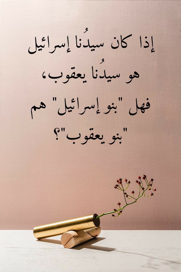 ولا أدلَّ على ذلك من الاعتقادِ بأنَّه إذا كان سيدُنا إسرائيل هو سيدُنا يعقوب، فإن هذا يلزم عنه ضرورة أن يكونَ “بنو إسرائيل” هم “بنو يعقوب”! فـ “بنو يعقوب” هم الأسباط فحسب، أما “بنو إسرائيل” فهم ذريةُ سيدِنا يعقوب إلى يوم الدين.