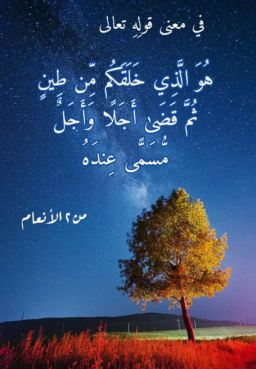 تختصر الآيةُ الكريمةُ الثانية من سورة الأنعام رحلةَ تخلُّقِ الإنسان بكلماتٍ غايةٍ في الدقةِ والبلاغة توجزُ ما استغرقَ اكتمالُه ملايين الأعوام (هُوَ الَّذِي خَلَقَكُمْ مِنْ طِينٍ ثُمَّ قَضَى أَجَلًا وَأَجَلٌ مُسَمًّى عِنْدَهُ). فلقد تعيَّنَ على الإنسانِ أن يخوضَ غمارَ “رحلةِ تخلُّقٍ” كان مبتدؤها الطين ومنتهاها نفخُ اللهِ تعالى في آدمَ من روحِهِ ليكونَ إنساناً في أحسنِ تقويم (وَبَدَأَ خَلْقَ الْإِنْسَانِ مِنْ طِينٍ) (من 7 السجدة)، (لَقَدْ خَلَقْنَا الْإِنْسَانَ فِي أَحْسَنِ تَقْوِيمٍ) (4 التين).