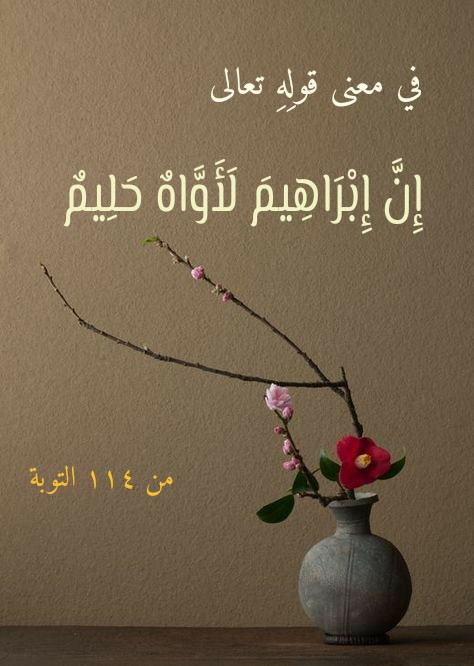 آيتان كريمتان تُفصِّلان وتُبيِّنان ما كان عليه إبراهيمُ عليه السلام من رقةِ قلبٍ ورهافةِ إحساس لا يمكنُ لمن يتدبَّرُ إحداهما أن يقوم بذلك إلا بتدبُّرِ الأخرى (وَمَا كَانَ اسْتِغْفَارُ إِبْرَاهِيمَ لِأَبِيهِ إِلَّا عَنْ مَوْعِدَةٍ وَعَدَهَا إِيَّاهُ فَلَمَّا تَبَيَّنَ لَهُ أَنَّهُ عَدُوٌّ لِلَّهِ تَبَرَّأَ مِنْهُ إِنَّ إِبْرَاهِيمَ لَأَوَّاهٌ حَلِيمٌ) (114 التوبة)، (فَلَمَّا ذَهَبَ عَنْ إِبْرَاهِيمَ الرَّوْعُ وَجَاءَتْهُ الْبُشْرَى يُجَادِلُنَا فِي قَوْمِ لُوطٍ. إِنَّ إِبْرَاهِيمَ لَحَلِيمٌ أَوَّاهٌ مُنِيبٌ) (74- 75 هود).