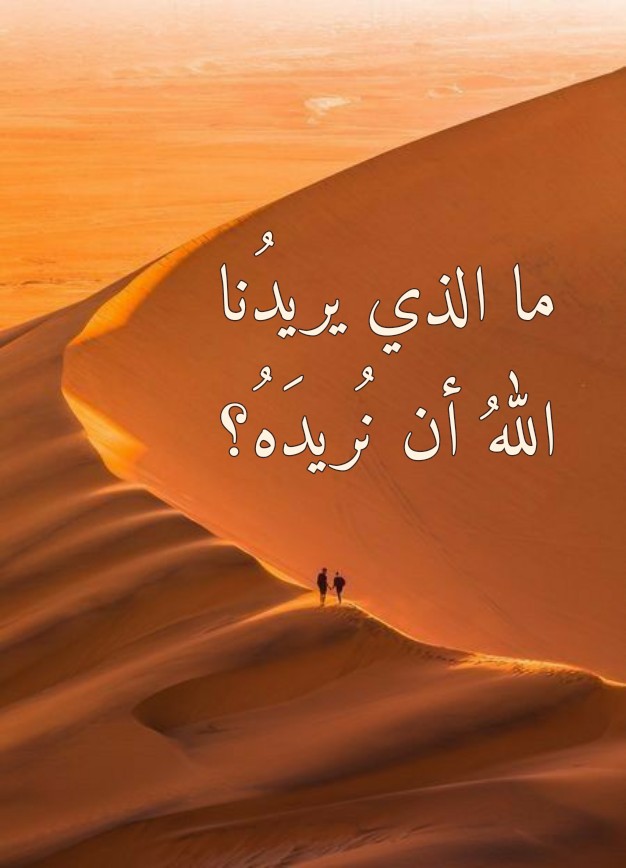 يُنبِئنا القرآنُ العظيم بأنَّ الله يُريدُ الآخرة (وَاللَّهُ يُرِيدُ الْآخِرَةَ) (من 67 الأنفال). فإذا كان اللهُ يُريدُ الآخرة، فإنَّ هذا هو عينُ ما ينبغي أن يكونَ مرادُنا. ويؤكِّدُ ذلك ما جاءتنا به سورةُ الأحزاب في آيتَيها الكريمتين 28- 29 (يَا أَيُّهَا النَّبِيُّ قُلْ لِأَزْوَاجِكَ إِنْ كُنْتُنَّ تُرِدْنَ الْحَيَاةَ الدُّنْيَا وَزِينَتَهَا فَتَعَالَيْنَ أُمَتِّعْكُنَّ وَأُسَرِّحْكُنَّ سَرَاحًا جَمِيلًا. وَإِنْ كُنْتُنَّ تُرِدْنَ اللَّهَ وَرَسُولَهُ وَالدَّارَ الْآخِرَةَ فَإِنَّ اللَّهَ أَعَدَّ لِلْمُحْسِنَاتِ مِنْكُنَّ أَجْرًا عَظِيمًا). فإذا كان اللهُ تعالى قد أرادَ نساءَ رسوله الكريم أن يُرِدنَ اللهَ ورسولَه صلى الله تعالى عليه وسلم والدارَ الآخرة، فإن هذا هو عينُ ما يريدُنا اللهُ أن نُريدَه.