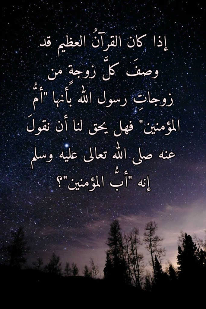 والآن، إذا كان القرآنُ العظيم قد وصفَ كلَّ زوجةٍ من زوجاتِ رسول الله بأنها “أمُّ المؤمنين” فهل يحق لنا أن نقولَ عنه صلى الله تعالى عليه وسلم إنه “أبُّ المؤمنين”؟