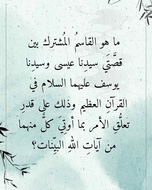 وهذا الذي آتاهُ اللهُ تعالى سيدَنا عيسى عليه السلام من قدرةٍ غير عادية لَيُذكرنا بما كان اللهُ تعالى قد آتاهُ سيدَنا يوسف عليه السلام من قدرةٍ غيرِ عاديةٍ هي الأخرى بوسعنا أن نتبيَّنَها وذلك بتدبُّرِنا ما جاءتنا به سورةُ يوسف من خبرِها في الآية الكريمة 37 منها، والتي يخاطبُ فيها عليه السلام صاحبَي سجنِهِ: (قَالَ لَا يَأْتِيكُمَا طَعَامٌ تُرْزَقَانِهِ إِلَّا نَبَّأْتُكُمَا بِتَأْوِيلِهِ قَبْلَ أَنْ يَأْتِيَكُمَا ذَلِكُمَا مِمَّا عَلَّمَنِي رَبِّي). وهذا الذي أنعمَ اللهُ به على سيدِنا يوسف كان جزاءً وفاقاً لما كان عليه حالُه معه تعالى؛ هذا الحالُ الشريف الذي يكفينا حتى نتبيَّنَه أن نتدبَّرَ ما جاءتنا به سورةُ يوسف في آيتَيها الكريمتين 37- 38 (إِنِّي تَرَكْتُ مِلَّةَ قَوْمٍ لَا يُؤْمِنُونَ بِاللَّهِ وَهُمْ بِالْآخِرَةِ هُمْ كَافِرُونَ. وَاتَّبَعْتُ مِلَّةَ آبَائِي إِبْرَاهِيمَ وَإِسْحَاقَ وَيَعْقُوبَ مَا كَانَ لَنَا أَنْ نُشْرِكَ بِاللَّهِ مِنْ شَيْءٍ).