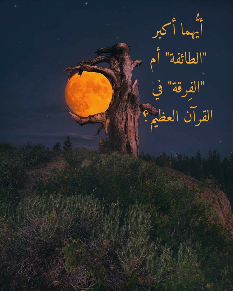 ولو أنَّنا تدبَّرنا الآيةَ الكريمةَ الوحيدة التي وردت فيها كلمة “فرقة”، لتبيَّنَ لنا أنَّ القرآنَ العظيم يُعلِّمُنا بأنَّ “الفرقةَ” هي أكبرُ من “الطائفة”. ويتبيَّنُ لنا هذا جلياً بتدبُّرِنا الآية الكريمة 122 من سورة التوبة أعلاه.