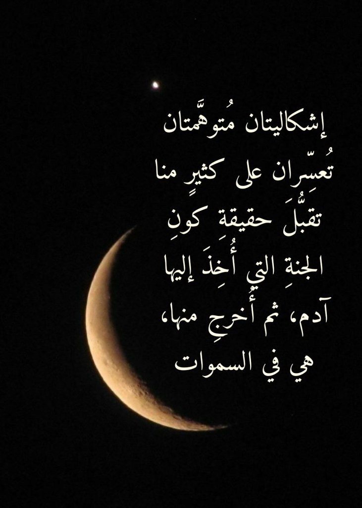 يعودُ ذلك إلى ما يظنُّهُ هؤلاءِ من أنَّ كونَ الجنة التي أُخِذَ إليها آدم هي في السموات يقتضي منهم أن يُفكِّروا في الكيفيةِ التي تمَّ نقلُه بها إلى تلك الجنة، والكيفيةِ التي أُعيد بها من تلك الجنة إلى الأرض! ويبدو أنَّ هؤلاءِ لا يريدون أن يصدِّقوا أنَّ اللهَ قادرٌ على كلِّ شيء، وأنَّ اللهَ لا يُعجزُه شيءٌ في السمواتِ ولا في الأرض (وَمَا كَانَ اللَّهُ لِيُعْجِزَهُ مِنْ شَيْءٍ فِي السَّمَاوَاتِ وَلَا فِي الْأَرْضِ) (من 44 فاطر). فلماذا يجدُ هؤلاءِ أنَّ في الأمرِ إعجازاً للهِ تعالى، حتى يُصِروا على أنَّ جنةَ آدم كانت على هذه الأرض وليست في السموات؟! ألم يقدِّم الله تعالى لنا في سورةِ الإسراءِ وسورة النجم ما يبرهنُ لنا على أنَّه قادرٌ على ذلك؟!