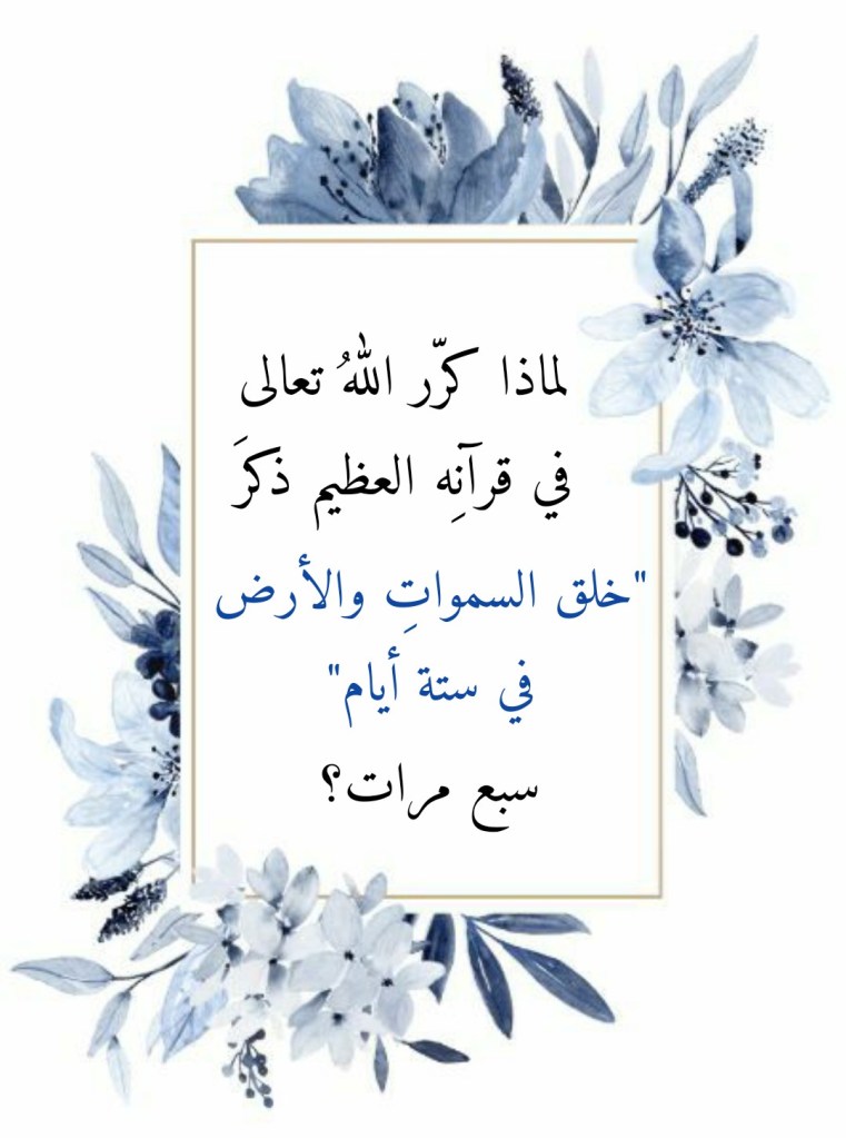 وفي هذه المقالة سوف أتطرق إلى برهانٍ آخر، يؤكد هو الآخر، أن هذا القرآن لا يمكن أن يكونَ من عند غير الله. فلو تدبَّرنا عددَ المرات التي يرِدُ فيها ذكرُ “خلق الله تعالى السموات والأرض في ستة أيام” في القرآن العظيم، لوجدنا أنَّه هو الآخر سبع مرات: