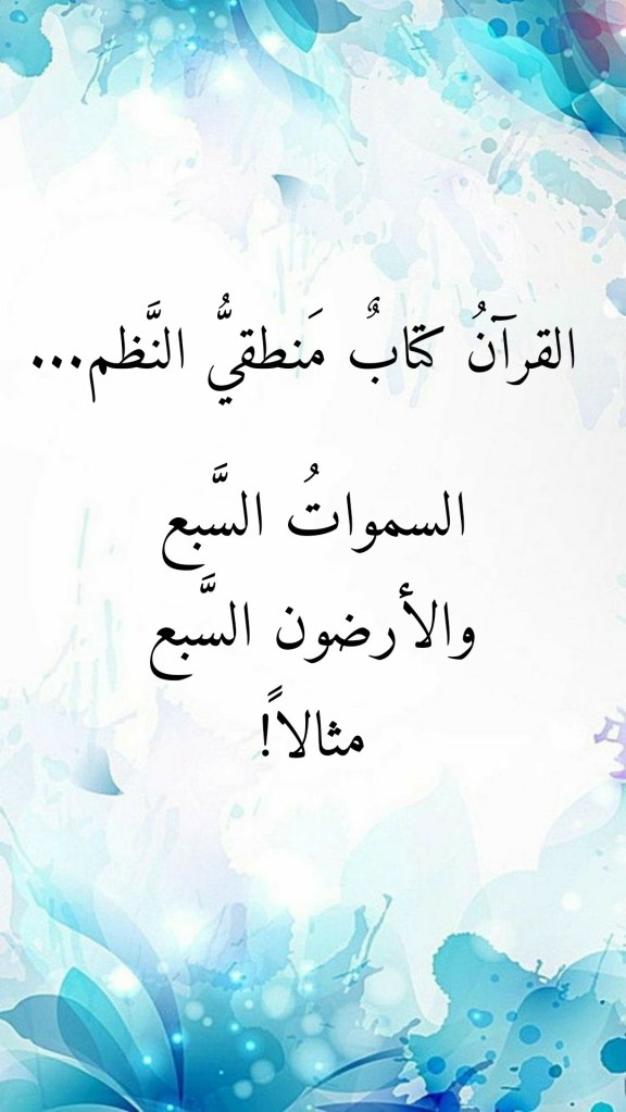 وفي هذا المنشور سوف أوردُ مثالاً يُبيِّنُ هذا الذي هو عليه القرآنُ العظيم من “نَظمٍ منطقي”. لنتدبَّر ما جاءتنا به سورةُ الطلاق في آيتِها الكريمة 12 (اللَّهُ الَّذِي خَلَقَ سَبْعَ سَمَاوَاتٍ وَمِنَ الْأَرْضِ مِثْلَهُنَّ). فاللهُ تعالى يُخبِرنا في هذه الآية الكريمة أنَّه كما خلقَ السماءَ الدنيا وجعلَ لها أرضاً هي هذه الأرضُ التي قدَّر لنا أن نعيش عليها، فإنه خلقَ لباقي السموات السبع أرضين، وجعلَ لكلِّ سماءٍ منهن أرضَها التي اختصَّها بها. وهذا هو تمامُ المنطق المُحكَم؛ فالقرآنُ العظيم يُخبِرنا، وفي مواطنَ سبعةٍ منه، أنَّ اللهَ تعالى خلقَ سبعَ سمواتٍ، ولم يتطرق إلى أمر الأرضين السبع إلا في موطنٍ واحدٍ من هذه المواطن السبع. وهذا تفصيلٌ من بعدِ إجمال لا يتعارضُ على الإطلاق مع ما أجملَته المواطنُ الست الأُخَر. فكما أنَّ لأرضِنا التي قُدِّرَ لنا أن نعيشَ عليها سماءها، التي سماها القرآنُ العظيم “السماء الدنيا”، فكذلك فإن لكلِّ أرضٍ من الأرضين الست الأخرى سماءها هي الأخرى.