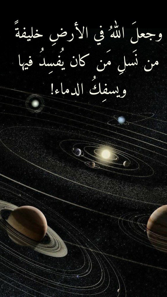 قارن ذلك بهذا الذي يكشفُ لنا القرآنُ العظيم النقابَ عنه بشأنِ “أصلِ الإنسان”. ولنأخذ هنا ما جاءتنا به سورةُ البقرة في الآية الكريمة 30 منها (وَإِذْ قَالَ رَبُّكَ لِلْمَلَائِكَةِ إِنِّي جَاعِلٌ فِي الْأَرْضِ خَلِيفَةً). فهذه الآية الكريمة تقولُ لمن يتدبَّرُها بأنَّه كانت هنالك مخلوقاتٌ سبقت الإنسانَ عاثت في الأرضِ فساداً وسفكت الدماء، وإنَّ اللهَ تعالى اصطفى واحداً منها، أمرَ ملائكتَه الكرام، الذين آرسلهم لإبادتِها، بأن يُبقوا عليه خليفةً من بعدها.
