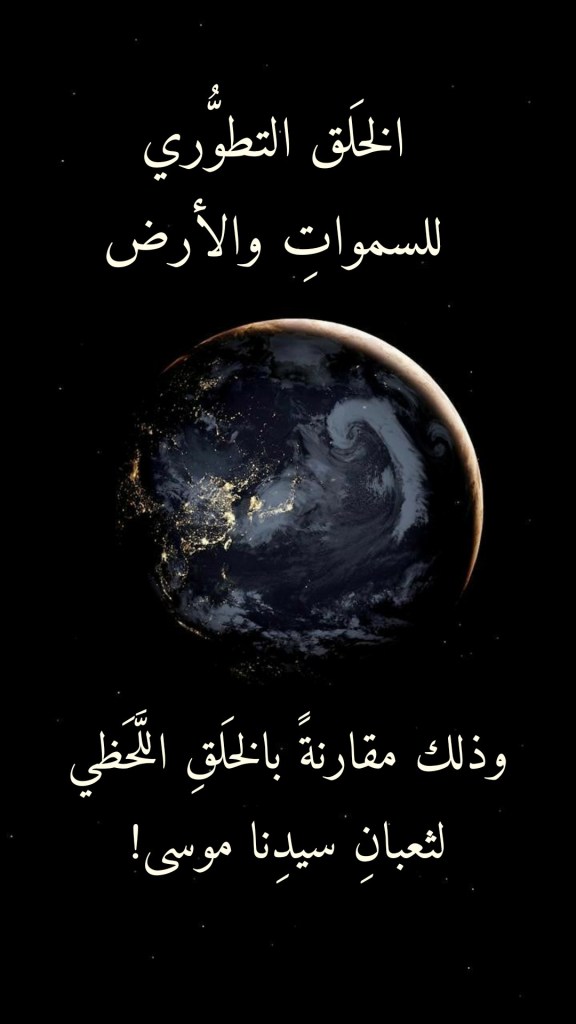 فهل يُعقَلُ أن يكونَ الصحيحُ عندَنا هو ما تراهُ عقولُنا، وذلك من بعدِ أن حكَّمناها في مُحكَمِ كتابِ اللهِ العزيز؟! وهل عادَ علينا هذا العزوفُ منا عن الأخذِ بكاملِ النَّصِ القرآني، عِوَضَ اجتزائِنا منه هذا البعضَ أو ذاك، إلا بما جعلَنا نخلُصُ إلى “أحكامٍ” و”أقوالٍ” أصبحت عندنا من “المقدَّساتِ” التي لا يجوزُ لأحدٍ أن يُجادِلَ بشأنِها حتى وإن كانت واضحةَ التعارُضِ مع ما ينُصُّ عليه هذا القرآن؟! وإلا فهل يُعقَلُ أن نُكفِّرَ كلَّ مَن يقولُ بـ “الخَلق التطوري”، لا لشيءٍ إلا لأنه قد وقرَ لدينا أنَّ اللهَ تعالى “غيرُ قادرٍ” على أن يخلقَ إلا بأن يقولَ للشيءِ “كن فيكون”؟! وكيف فاتَنا أن نستذكرَ ما يُشدِّدُ عليه القرآنُ العظيم من أنَّ اللهَ تعالى قد خلقَ السمواتِ والأرضَ في ستةِ أيامٍ “خَلقاً تطورياً”؟! (إِنَّ رَبَّكُمُ اللَّهُ الَّذِي خَلَقَ السَّمَاوَاتِ وَالْأَرْضَ فِي سِتَّةِ أَيَّامٍ ثُمَّ اسْتَوَى عَلَى الْعَرْش) (من 3 يونس). فلو أنَّ اللهَ تعالى خلقَ السمواتِ والأرضَ خَلقاً لحَظياً “غيرَ تطوري” لما اقتضى ذلك منه غيرَ أن يقول لهما “كن فيكون”، وذلك كما حدثَ لعَصا سيدِنا موسى التي استحالت ثعباناً بلمحِ البصر وذلك بقولِ اللهِ تعالى لها “كن فيكون” (فَأَلْقَى عَصَاهُ فَإِذَا هِيَ ثُعْبَانٌ مُبِين) (32 الشعراء).