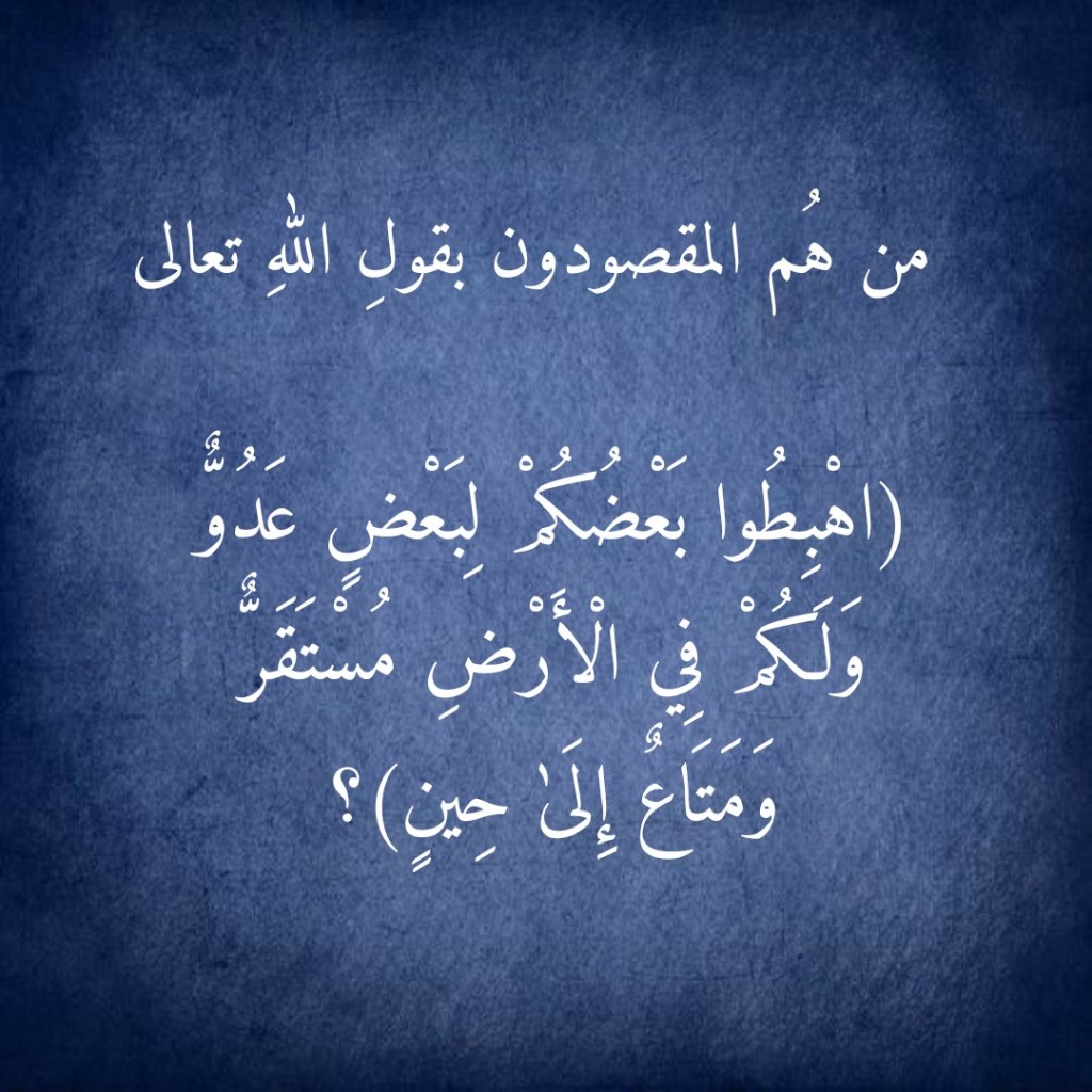 يتبيَّن لنا وبتدبر ما تقدم أنَّ الإصرارَ على الاحتكامِ إلى منطقِنا البشري عوَض الحكمِ بما أنزل اللهُ تعالى سوف يجعُلنا، ومن حيث لا ندري، نقدم خدمةً عظيمةً للدعاة إلى الإلحاد وذلك لأنهم لن يجدوا في المقارنةِ بين ما يقول به أولئك الذين فسَّروا الآية الكريمة (اهْبِطُوا بَعْضُكُمْ لِبَعْضٍ عَدُوٌّ) بأن المُخاطَب فيها هم “آدمُ وذريتُه والشيطانُ وقبيلُه” وبين الآيات الكريمة التي يأمر اللهُ فيها الذين آمنوا “بأن يتخذوا الشيطانَ عدواً” إلا دليلاً وبرهاناً على أن القرآنَ وبسببٍ من هذا التناقض بين آياته لا يمكن أن يكون من عند الله!!!!!