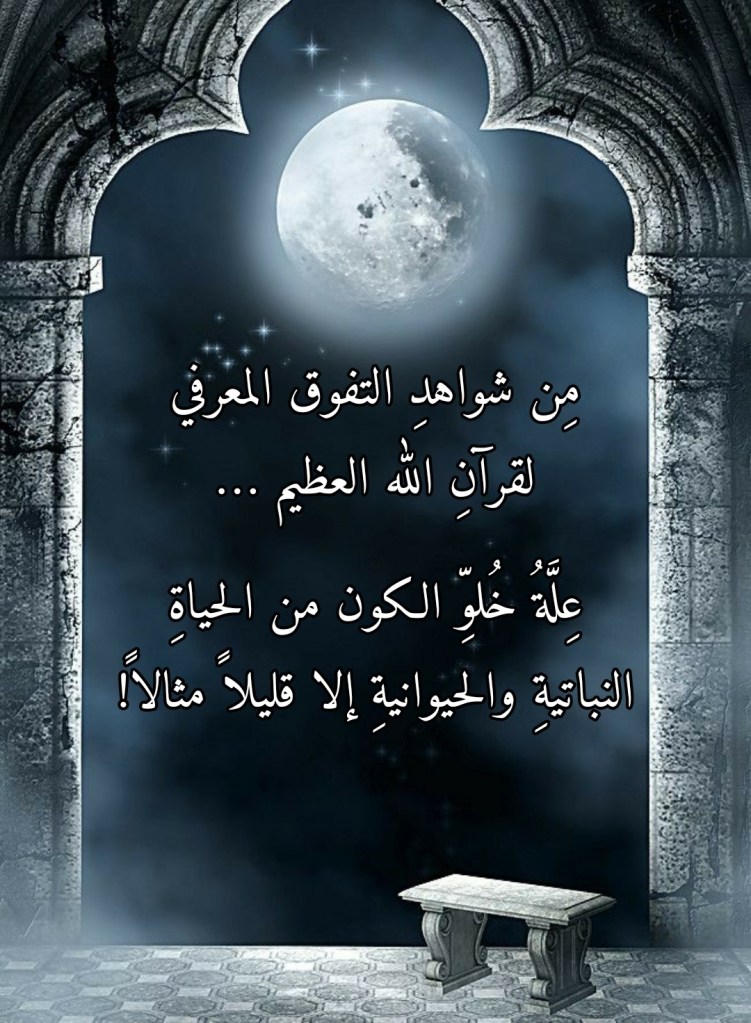 فكيف لا يُحسب للقرآن العظيم إذاً أنه متفوقٌ على العلم المعاصر بهذا الذي جاء فيه من آياتٍ كريمةٍ يبين لنا الله تعالى فيها أن السمواتِ والأرضَ، وعلى الرغم من اتساعهما المذهل، ليس فيها غيرُ “سبعِ أرضين” تنتشر الحياة النباتية والحيوانية فيها؟ لنتدبر ما جاءتنا به سورة البقرة في الآية الكريمة 29 منها (هُوَ الَّذِي خَلَقَ لَكُم مَّا فِي الْأَرْضِ جَمِيعًا ثُمَّ اسْتَوَىٰ إِلَى السَّمَاءِ فَسَوَّاهُنَّ سَبْعَ سَمَاوَاتٍ وَهُوَ بِكُلِّ شَيْءٍ عَلِيمٌ ). فالسموات السبع هن سمواتُ أرضين سبع، وهذا هو ما جاءتنا به سورة الطلاق في الآية الكريمة 12 منها (اللَّهُ الَّذِي خَلَقَ سَبْعَ سَمَاوَاتٍ وَمِنَ الْأَرْضِ مِثْلَهُنَّ). وهذه الأرضون السبع، التي أرضُنا هذه واحدةٌ منهن، هي كل ما هنالك في هذا الكون من أماكن تنتشر فيها الحياةُ النباتيةُ والحيوانية. فإذا ما أخذنا بنظر الاعتبار مدى اتساع الكون فإن أمرَ خلوِّه من الحياة النباتية والحيوانية يغدو مفهوماً.