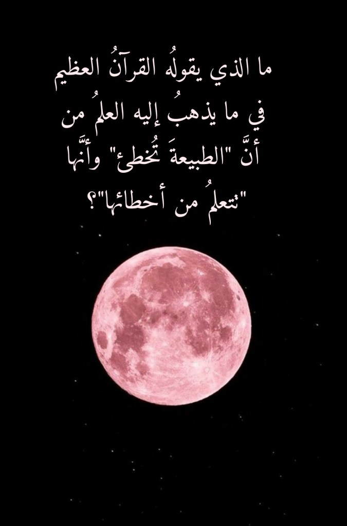 فالطبيعةُ “لا تخطيءُ” حتى “تتعلمَ من أخطائها”! فالطبيعةُ تأتمرُ بأمر الله وهي لا تعصي له أمراً ولا تفعلُ ما تفعلُ عن أمرها حتى يكونَ لها “أن تخطيءَ” وحتى يكون لها “أن تتعلمَ من أخطائِها”!