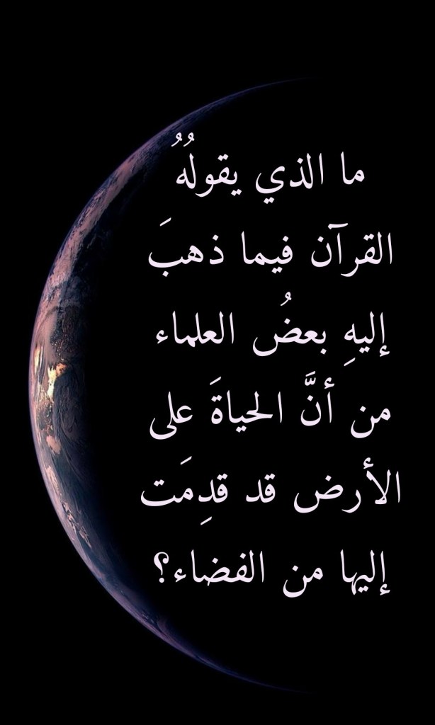 يُخبرنا القرآنُ العظيم بأن الله تعالى هو مَن خلقَ الحياةَ النباتيةَ والحيوانية على الأرض. وأنه تعالى، ومن بعد أن أستتب للحياةِ أمرُها، قد استوى إلى السماءِ فخلق فيها حياةً نباتيةً وحيوانية في أرضين أخرى وأن هذه الأرضين، مع أرضنا هذه التي قَدر لنا أن نحيا فيها، هي “سبعُ أرضين”. وأن هذه “الأرضين السبع” هي كلُ ما هنالك من “أماكنَ” في هذا الوجود شاء اللهُ تعالى لها أن ينتشر فيها هذا النوعُ من أنواع الحياة.