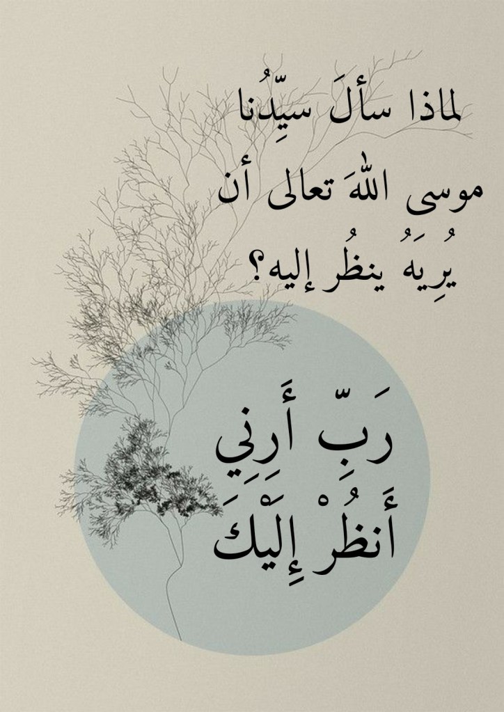 قد تبدو الإجابةُ على هذا السؤالِ لا تحتاج إلى كثيرٍ من إمعان النظر وإعِمال الفكر. فسيدُنا موسى ما كان بِدعاً من الرُّسلِ حتى لا ينبغي له أن يسألَ اللهَ تعالى هكذا سؤال. فيكفينا أن نستذكرَ السؤالَ الذي عنَّ لسيدنا إبراهيم أن يسألَهُ اللهَ تعالى: (وَإِذْ قَالَ إِبْرَاهِيمُ رَبِّ أَرِنِي كَيْفَ تُحْيِي الْمَوْتَىٰ) (من 260 البقرة). فكما أن سيدَنا إبراهيمَ قد سأل اللهَ تعالى أن يُرِيَه كيف يُحيي الموتى، فلا ضيرَ إذاً من أن يسأل سيدُنا موسى اللهَ تعالى أن يُرِيَه ينظر إليه. وهذا قياسٌ إن كان منطقياً، وذلك وفقاً لما تقضي به أحكامُ “المنطق البشري”، فإنه لا يستقيمُ مع منطق القرآن العظيم! فما كان لسيدنا موسى أن يسألَ اللهَ تعالى سؤالاً كهذا وهو الحصيفُ اللبيبُ العليمُ بآدابِ المثولِ بين يدَي الله. فلماذا سأل سيدُنا موسى اللهَ تعالى هذا السؤال؟