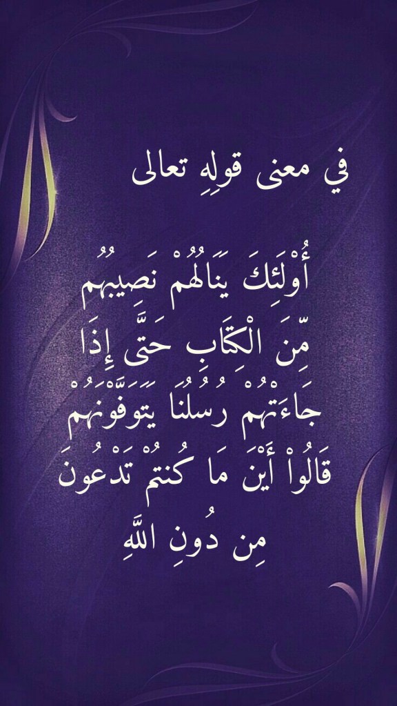 فهاتان الآيتان الكريمتان تتحدثان عن المجرمين الذين، ومن بعد أن يكون قد نالهم من “كتاب الله” الذي لبثوا فيه ما شاء الله تعالى لهم نصيبهم المفروض، سيأتي إليهم رُسُلُ الله من ملائكته المكلفين بهم ليصطحبوهم إلى الحساب ومن بعد ذلك الى العذاب في نار جهنم وبئس المصير.