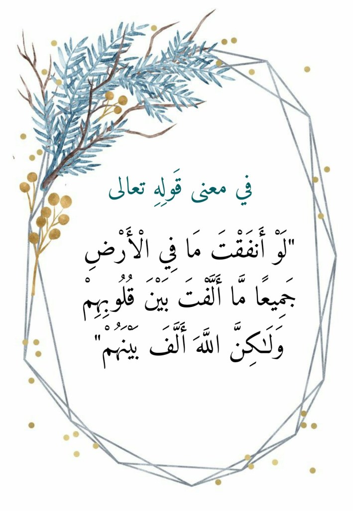 تُورد لنا سورة الأنفال في الآيتين الكريمتين ٦٢ و٦٣ منها جانباً من عظيم فضلِ الله تعالى على رسوله الكريم صلى الله تعالى عليه وسلم: (وَإِن يُرِيدُوا أَن يَخْدَعُوكَ فَإِنَّ حَسْبَكَ اللَّهُ هُوَ الَّذِي أَيَّدَكَ بِنَصْرِهِ وَبِالْمُؤْمِنِينَ. وَأَلَّفَ بَيْنَ قُلُوبِهِمْ ۚ لَوْ أَنفَقْتَ مَا فِي الْأَرْضِ جَمِيعًا مَّا أَلَّفْتَ بَيْنَ قُلُوبِهِمْ وَلَٰكِنَّ اللَّهَ أَلَّفَ بَيْنَهُمْ ۚ إِنَّهُ عَزِيزٌ حَكِيمٌ). فتأليفُ اللهِ تعالى بين المؤمنين أمرٌ ما كان لأحدٍ غير الله تعالى أن يقوم به، حتى وإن كان هذا “الأحد” هو سيدنا محمد صلى الله تعالى عليه وسلم.