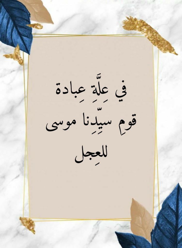 يتبين لنا مما تقدم أن العلةَ من وراءِ إقدامِ قومِ سيدِنا موسى على عبادةِ العجل ترجعُ إلى أنهم قد عجِلوا أمر ربِهم إذ طالَ عليهم العهدُ والأمد وظنوا بالله تعالى الظنونَ فتوهموا الباطلَ حقاً فأعرضوا عن الحقِ الذي ما تولى عنه أحدٌ إلا وحَكَّمَ الله فيه أولياءِ الباطل وأساطينه (وَلَمَّا رَجَعَ مُوسَىٰ إِلَىٰ قَوْمِهِ غَضْبَانَ أَسِفًا قَالَ بِئْسَمَا خَلَفْتُمُونِي مِن بَعْدِي أَعَجِلْتُمْ أَمْرَ رَبِّكُمْ) (١٥٠ الأعراف).