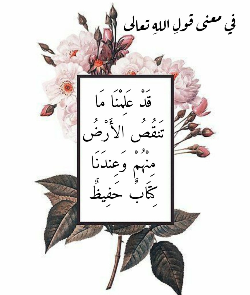 فاللهُ تعالى يعلمُ ما تنقصُ الأرضُ من أبدانِ بني آدمَ بعد موتهم، حتى لا يتبقى منها إلا قليلاً من الرُّفاتِ والعظام. إلا أن هذا لا يلزمُ عنه وجوبُ ألا يبقى من الإنسان بعد موته شيء! فذلك ظنُّ من لا يعلمُ بأن لدى اللهِ تعالى كتاباً حفيظاً تُحفظ فيه الأنفس بعد موتها حتى تقومَ الساعةُ ويجيءَ يومُ البعث: (وَيَوْمَ تَقُومُ السَّاعَةُ يُقْسِمُ الْمُجْرِمُونَ مَا لَبِثُوا غَيْرَ سَاعَةٍ ۚ كَذَٰلِكَ كَانُوا يُؤْفَكُونَ . وَقَالَ الَّذِينَ أُوتُوا الْعِلْمَ وَالْإِيمَانَ لَقَدْ لَبِثْتُمْ فِي كِتَابِ اللَّهِ إِلَىٰ يَوْمِ الْبَعْثِ ۖ فَهَٰذَا يَوْمُ الْبَعْثِ وَلَٰكِنَّكُمْ كُنتُمْ لَا تَعْلَمُونَ) (٥٥-٥٦ الروم).