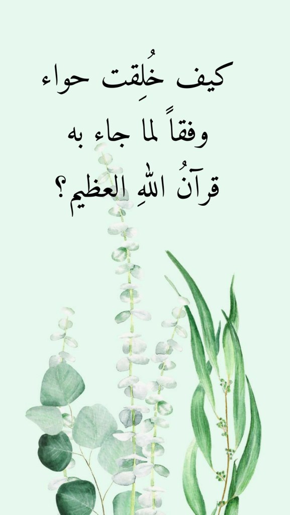 يظنُّ كثيرٌ من الناسِ أنَّ أُمَّ البشر حواء قد خُلِقَت من ضلعٍ لأبينا آدم استُلَّ منه وهو نائم على حينِ غفلةٍ منه!!! وهذا ظنٌّ يُكذِّبُهُ قرآنُ اللهِ العظيم، حيث لم يرِد فيه شيءٌ من مثلِ هذا! فكلُّ ما جاءنا بهِ قرآنُ اللهِ العظيم بشأنِ خَلقِ حواء هو ما بوسعنا أن نتبيَّنَه بتدبُّر الآياتِ الكريمةِ التالية: (يَا أَيُّهَا النَّاسُ اتَّقُوا رَبَّكُمُ الَّذِي خَلَقَكُمْ مِنْ نَفْسٍ وَاحِدَةٍ وَخَلَقَ مِنْهَا زَوْجَهَا وَبَثَّ مِنْهُمَا رِجَالًا كَثِيرًا وَنِسَاءً) (من ١ النساء)، (هُوَ الَّذِي خَلَقَكُم مِّن نَّفْسٍ وَاحِدَةٍ وَجَعَلَ مِنْهَا زَوْجَهَا لِيَسْكُنَ إِلَيْهَا) (من ١٨٩ الأعراف)، (خَلَقَكُم مِّن نَّفْسٍ وَاحِدَةٍ ثُمَّ جَعَلَ مِنْهَا زَوْجَهَا) (من ٦ الزُّمَر). فمن أينَ إذاً جاءنا هؤلاءِ المُرجِفون بهذه الأكذوبة؟!