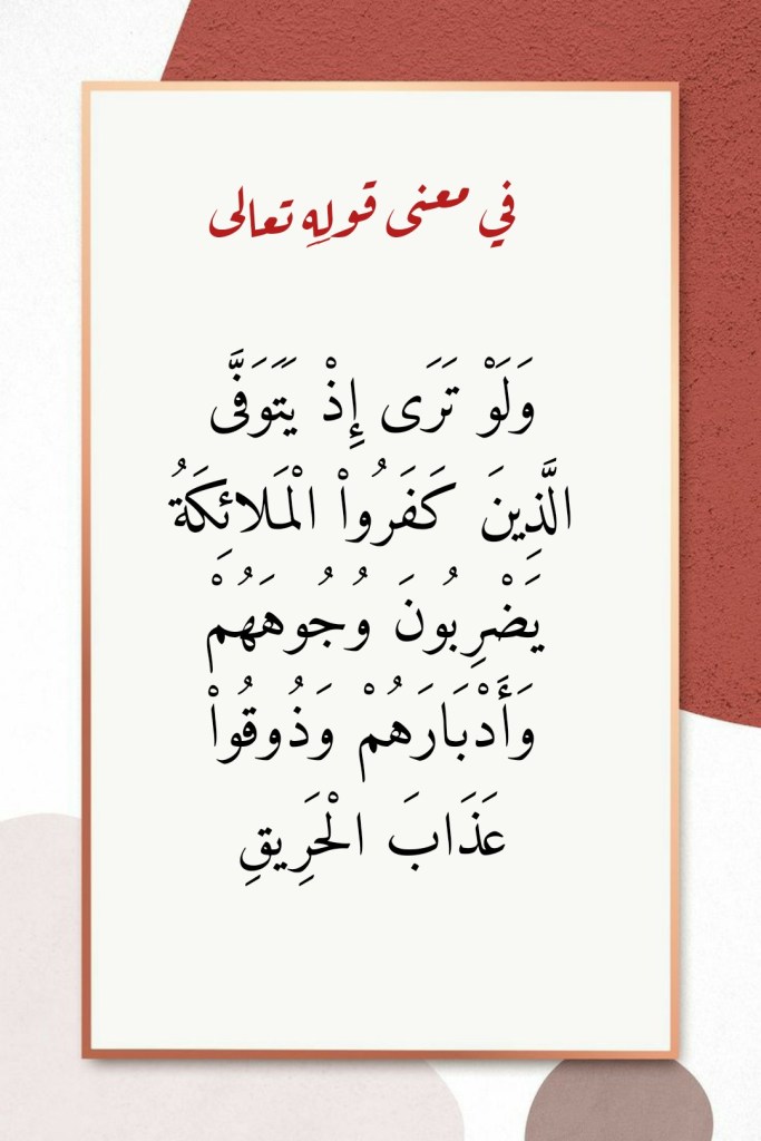 تتوفَّى الملائكةُ الإنسانَ في هذه الحياةِ الدنيا حين موتِه (حَتَّى إِذَا جَاءَ أَحَدَكُمُ الْمَوْتُ تَوَفَّتْهُ رُسُلُنَا وَهُمْ لَا يُفَرِّطُونَ) (من 61 الأنعام). وتُشيرُ العبارةُ القرآنيةُ الجليلة “وَهُمْ لَا يُفَرِّطُونَ”، في هذه الآيةِ الكريمة، إلى حقيقةٍ ذاتِ صلةٍ بما يجري على الإنسانِ حين موتِه. فإذا كان بدَنُ الإنسانِ قد قُدِّر عليه أن تنالَ منه الأرضُ حتى لا يبقى منه شيءٌ غيرُ عظامٍ وترابٍ ورُفاة، فإنَّ نفسَه سيجري التحفُّظُ عليها وديعةً تتسلَّمُها الملائكةُ الذين أُوكِلَ إليهم اصطحابُها إلى “كتابِ الله” الذي ستُودَع فيه في حِفظِ اللهِ حتى يومِ البعث (وَقَالَ الَّذِينَ أُوتُوا الْعِلْمَ وَالْإِيمَانَ لَقَدْ لَبِثْتُمْ فِي كِتَابِ اللَّهِ إِلَى يَوْمِ الْبَعْثِ فَهَذَا يَوْمُ الْبَعْثِ وَلَكِنَّكُمْ كُنْتُمْ لَا تَعْلَمُونَ) (56 الروم).
