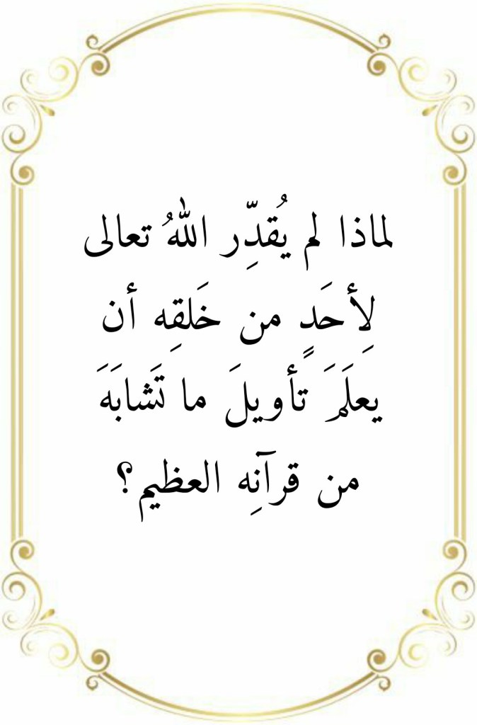 ولقد شاعَ فينا وذاعَ ظنٌّ فاسدٌ مفادُه أنَّ هناك من العالَمين فئةً بمقدورِها أن تعلمَ تأويلَ ما تشابَه من قرآنِ اللهِ العظيم! وهذا ظنٌّ يتعارضُ مع صريحِ نَصِّ قرآنِ اللهِ العظيم (وَمَا يَعْلَمُ تَأْوِيلَهُ إِلَّا اللَّهُ). فما الذي حدا بالقومِ إلى التجاسُرِ على قرآنِ اللهِ العظيم بهذا الظنِّ الفاسِد؟
